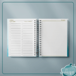 Páginas pontilhadas p/ anotações, planejamento mensal e semanal, roda da vida, resumo do mês, controle financeiro e controle de hábitos não podem faltar em nenhum Planner, né?! 🙂